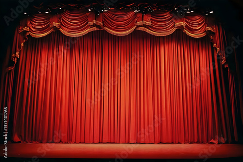 Photo of Red Theater Curtain with Gold Trim and Empty Stage