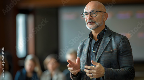 Photo realistic as Corporate Trainer Teaching Conflict Resolution concept as A corporate trainer teaches conflict resolution techniques in a leadership development session to enhan