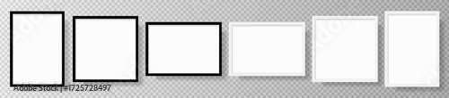 Photo Realistic Black Blank Picture Frame, hanging on a Wall from the Front. mockup isolated on transparent background. Graphic style template. Vector illustration
