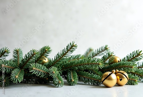 Photo Realistic Christmas Greenery: Bells on Table, Isolated on White, Front View, Small Festive Decor, Minimalist Holiday Ornament.