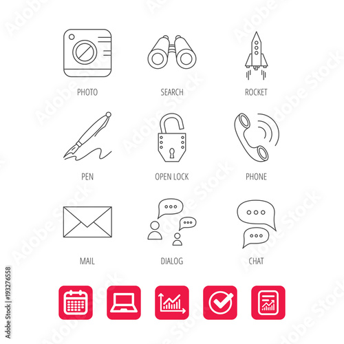Photo, startup rocket and search icons.