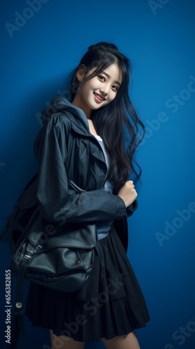 Photograph a young Korean girl with a Korean style fashion concept.