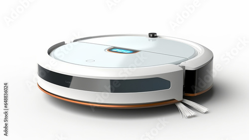 photograph of Autonomous smart robot vacuum cleaner isolated .