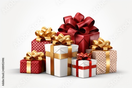 Photograph of Collection of colorful gifts with ribbon bows in different colors to choose from including red, gold and silver