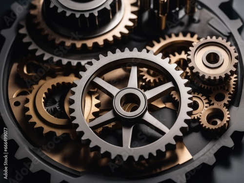 photograph showcasing intricate interlocking gears in a realistic,