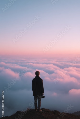 Photographer Above the Clouds at Sunset