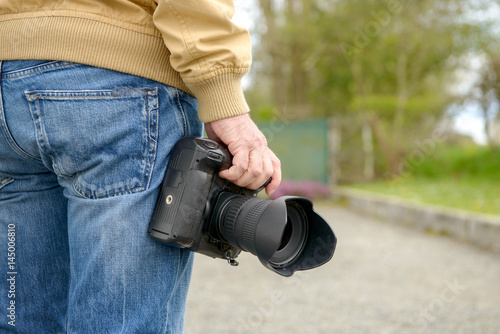 photographer holding his photo camera
