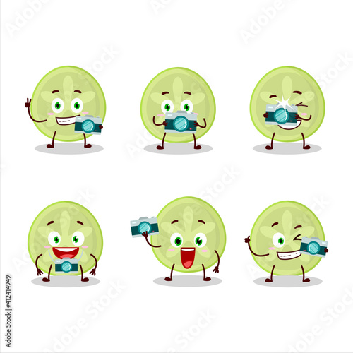 Photographer profession emoticon with slice of bilimbi cartoon character