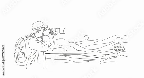 Photographer with Backpack Captures Breathtaking Mountain Landscape