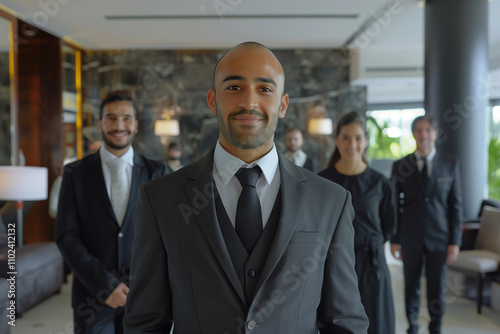 Photography of Portugal team of professional workers in a modern hotel.