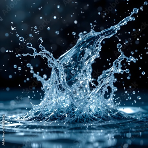 Photorealistic Blue Water Splash in Macro View, water splash in blue