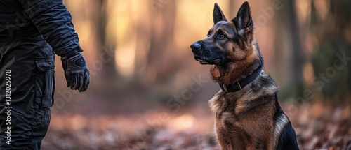 Photorealistic Image of a Dog in Obedience Training, Focusing on Basic Commands and Bonding with Trainer in a Natural Outdoor Setting