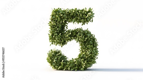 Photorealistic Number "5" Formed from Lush Greenery, Representing Growth and Vitality, Isolated on a White Background, Perfect for Eco-Friendly and Nature-Inspired Designs