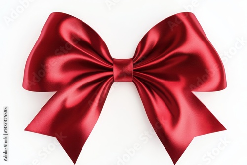 Photorealistic render of a red satin bow with vibrant crimson hues, symmetrical design, and luxurious sheen highlighted by studio lighting for festive gift wrapping