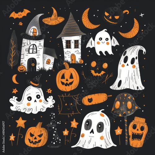 Photos of Halloween theme. Hand drawn flat halloween instagram stories card collection.