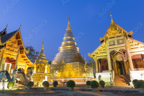 Phra Sing temple,landmark for tourist at Chiang Mai,Thailand.Most favorite landmark for travel Phra Sing temple at night scene.