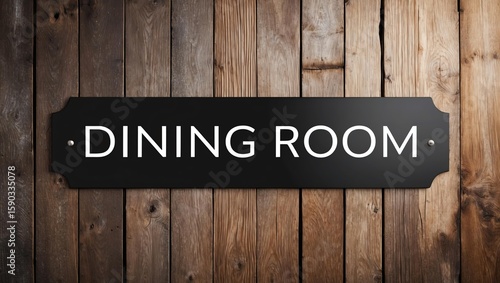 Phrase Dining Room is displayed on an attractive signage board with on a beautiful rustic wooden background