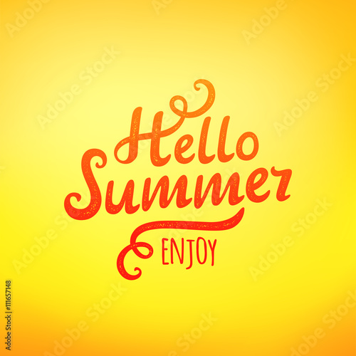 Phrase Hello Summer, typography inscription on yellow background. Vector illustration