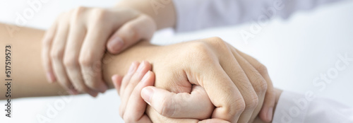 Physical therapy, Female physiotherapist treats hand and joint pain for a male patient attending in clinic, Bone arrangement, Non-surgical medical treatment, Modern medical techniques.