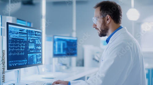 Physician Analyzing Genomic Scans in Modern Clinical Environment