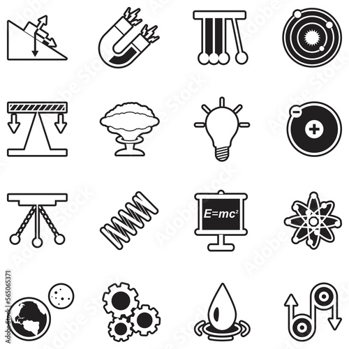 Physics Science Icons. Line With Fill Design. Vector Illustration.