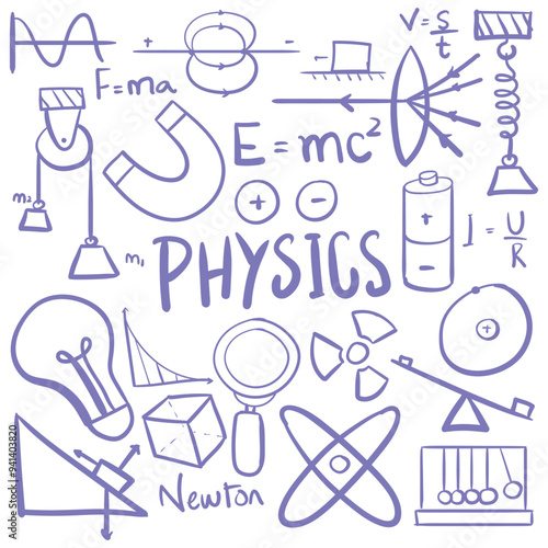 Physics scribbles vector. hand drawing physics doodle scribble vector. physics doodle