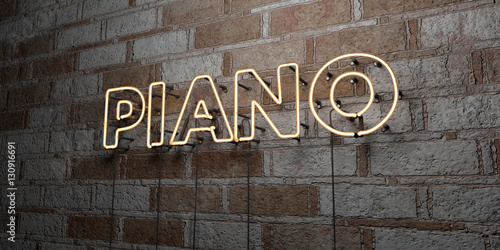 PIANO - Glowing Neon Sign on stonework wall - 3D rendered royalty free stock illustration. Can be used for online banner ads and direct mailers..
