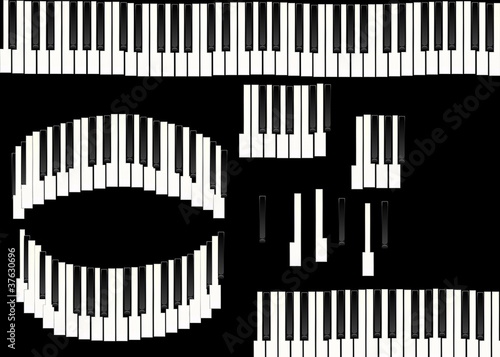 piano keys isolated on black background, texture