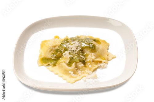 piatto di ravioli al pesto