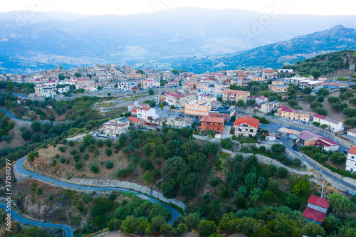 Piccolo paese Careri in Calabria, vista aerea.