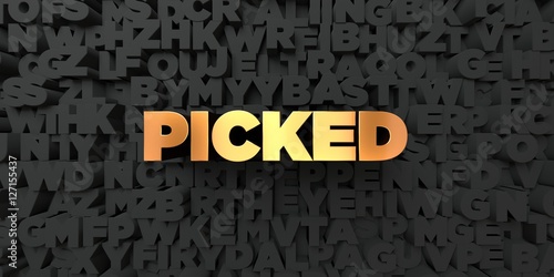 Picked - Gold text on black background - 3D rendered royalty free stock picture. This image can be used for an online website banner ad or a print postcard.