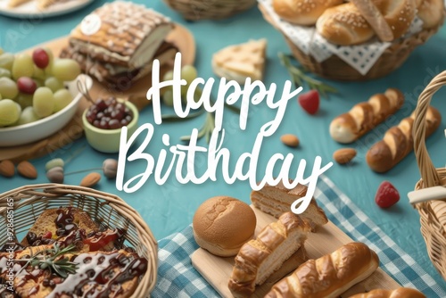Picnic Collage: A relaxed collage with photos of picnic-themed birthday celebrations, blankets, and baskets. The text "Happy Birthday" is written in a casual, picnic-themed font.