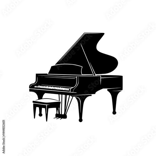 Pictogram of a grand piano silhouette with stool showcasing elegance in music