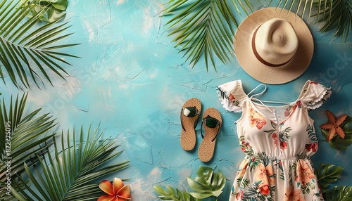 Picture a flat lay with a fashionable summer bag, scarf, and statement jewelry