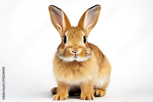 Picture draw by watercolor of brown rabbit on white background. Rabbit is symbol of celebration. Easter celebration. Realistic clipart template pattern. For fabric texture design. work of art.