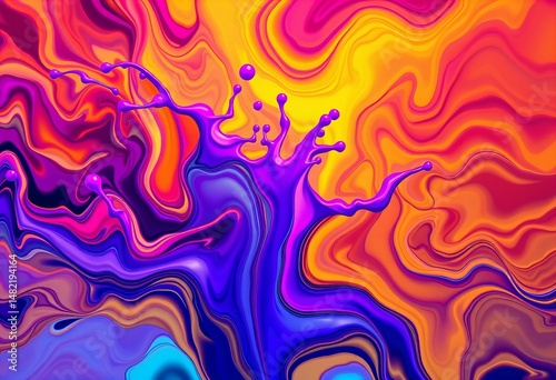 Picture Fluid paint splash in vibrant and bold neon colors.