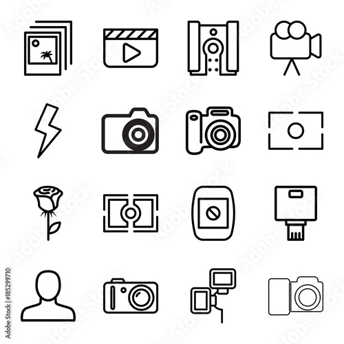 Picture icons. set of 16 editable outline picture icons