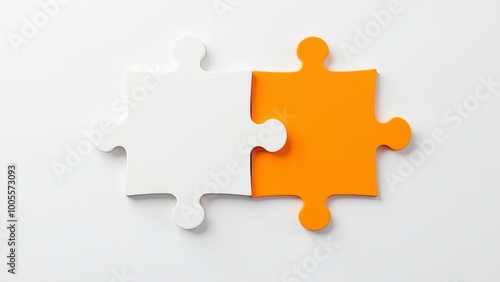 Picture of an orange puzzle piece that fits into a white puzzle. Teamwork, solutions, and problem-solving concepts are emphasized