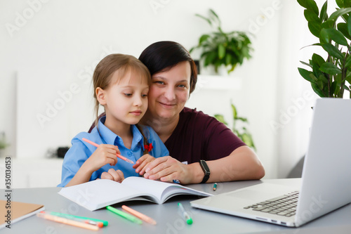 picture of mother and daughter with a laptop pc