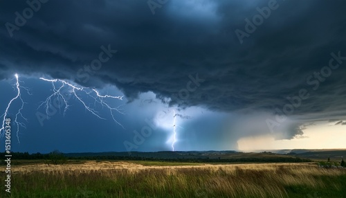 picture of thunderstorm clouds starting to pour rain and lightning