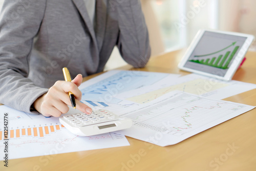 picture of woman hand with calculator and papers