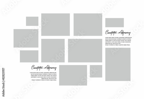 Pictures or photos frame collage. comics page grid layout abstract photo frames and digital photo wall template