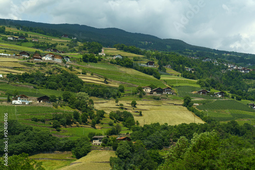 Picturesque Mountain Village Nestled Amongst Rolling Green Hills on a Sunny Afternoon
