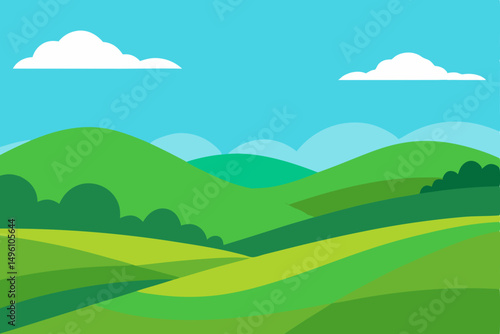 Picturesque Rolling Green Hills Landscape Scenic Background Vector Illustration Background