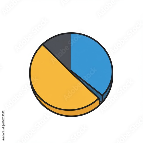 Pie chart with three sections in yellow, blue and gray, for business presentation.