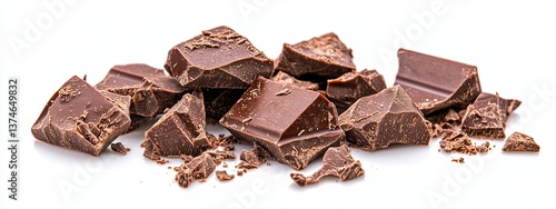 piece bar chunk broken cocoa milk background dark candy view. top piece bar chunk isolated white above flying cream dessert food cacao chip chopped crumb 3D snack cube bowl flake sweet square slic