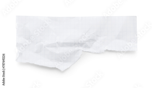 Piece of checkered notebook sheet isolated on white, top view