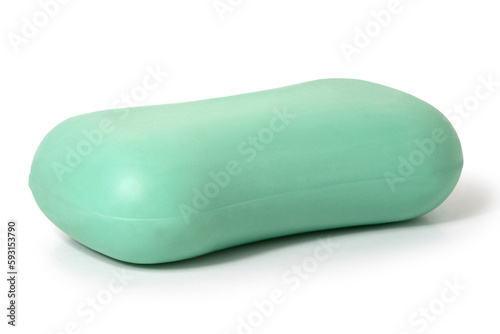 Piece of green toilet soap on a white background. Full depth of field. With clipping path