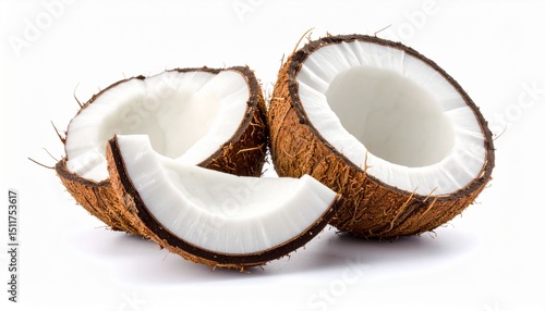 Pieces of fresh ripe coconut isolated on white background