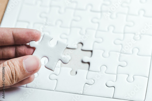Pieces of jigsaw on palm,Pieces of jigsaw puzzle in man's hands